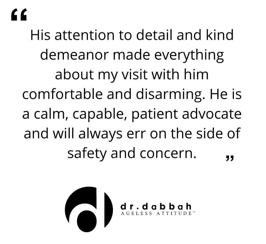 Not only is Dr. Dabbah a superb physician, but he also cares genuinely and deeply about his patients and their families. Dr. Dabbah’s interaction and communication with patients is always thoughtful and comforting. My wife and I not only experienced these qualities ourselves, but noticed his compassionate treatment of other patients as well.