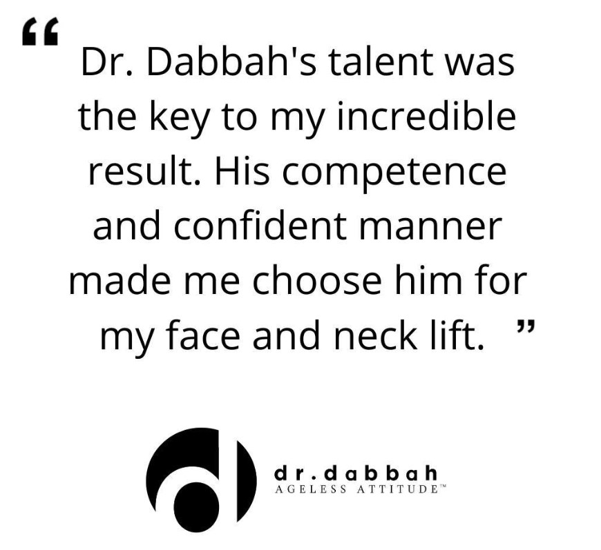 Dr. Dabbah is not only a skilled surgeon, but an artist. I have had both medically necessary procedures and some of personal choice and I have been completely pleased with all. I never need any pain medication afterwards for any of the procedures, which is quite amazing! He possesses great compassion and has a great bedside manner and personality. I feel fortunate to have found him.